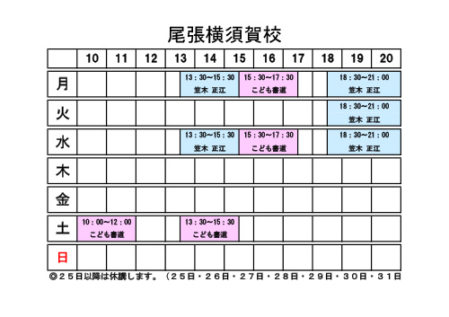 | 受講料 | 5,000円 | 月4回・フリータイム制 |