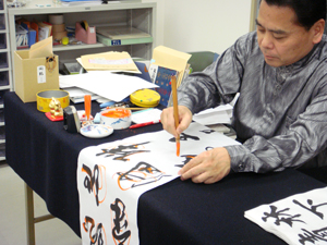 紫雲書道教室栄本校では、日展入選作家で郁雲社代表の加藤紫雲先生が楽しいトークと、妥協のない指導で生徒を引っ張って行ってくれるのです。