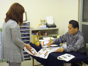 手本を真似て書きます。初めは上手く書けませんが、段々似てきます。